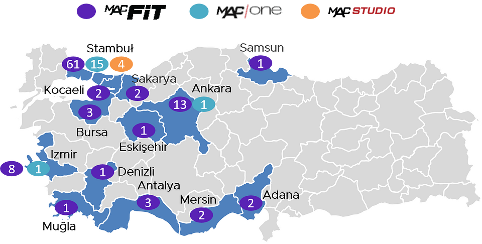Grupa MAC jest największą siecią klubów fitness i wyraźnym liderem rynku fitness w Turcji – konkurencyjnym podmiotom brakuje podobnej skali i liczby lokalizacji. Rozbudowane i atrakcyjne portfolio klubów Grupy MAC działa w dogodnych dla użytkowników lokalizacjach w dużych miastach – w Stambule jest 80 klubów, 14 w Ankarze oraz 9 w Izmirze. Na koniec 2024 roku z oferty sieci korzystało 305 tysięcy użytkowników, zaś z produktów online, w tym z aplikacji mobilnej, ponad 1,4 mln osób. Ponadto Grupa MAC posiada salony SPA pod marką Nuspa.