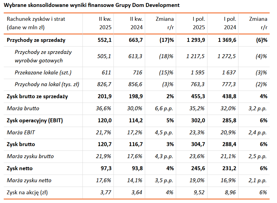 Dom Development podsumowuje pierwszą połowę 2025 - wyższa sprzedaż mieszkań, rosnące zyski