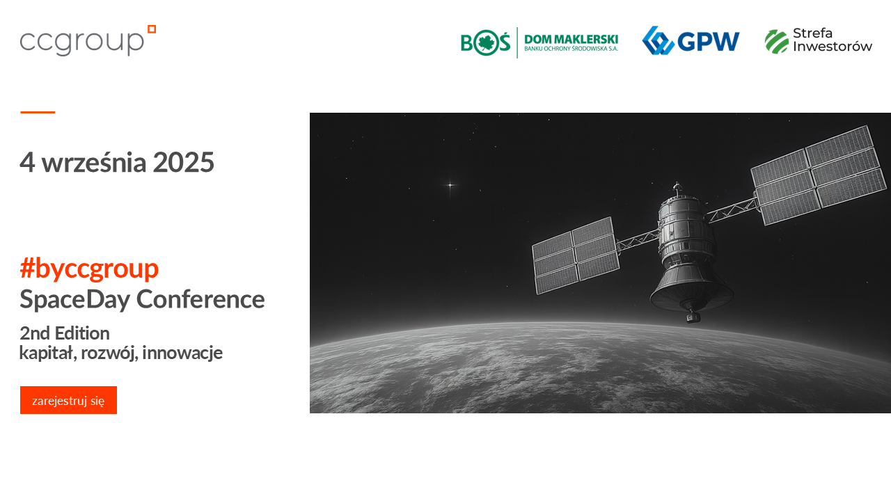 - W roku w którym Polska wysłała w kosmos swojego drugiego astronautę, powracamy na GPW z drugą edycją konferencji SpaceDay – jeszcze większą i bardziej ambitną, co dobrze koresponduje ze skalą rozwoju branży w ciągu ostatnich dwóch lat. To wydarzenie dedykowane polskiemu sektorowi kosmicznemu i jego rosnącej roli na rynku kapitałowym, który coraz szerzej dostrzega perspektywy wzrostu jakie kształtują się przed branżą dzięki dojrzałości jej przedstawicieli oraz wzmożonym inwestycjom ze strony publicznej i prywatnej. Każda misja kosmiczna zaczyna się na Ziemi, a cc group przygotowuje spółki do pozyskiwania kapitału, wspiera w realizacji kolejnych rund finasowania i buduje szerokie zainteresowanie branżą wśród inwestorów i mediów – komentuje Adam Kalkusiński, Prezes Zarządu cc group.