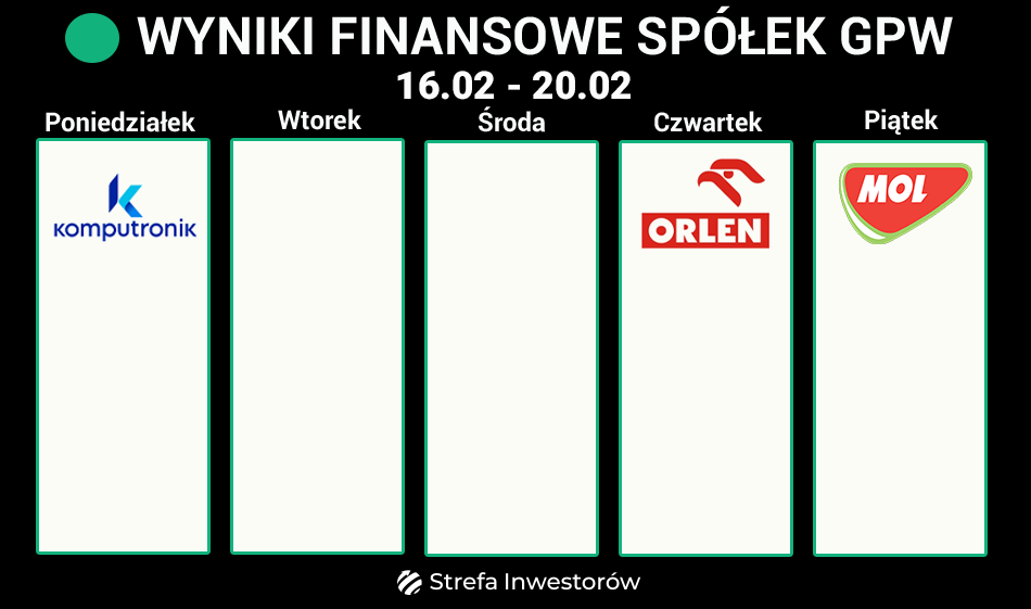Dzień później, w piątek, 20 lutego, wyniki za IV kwartał opublikuje węgierski MOL, zintegrowany koncern naftowo-gazowy z Europy Środkowej.